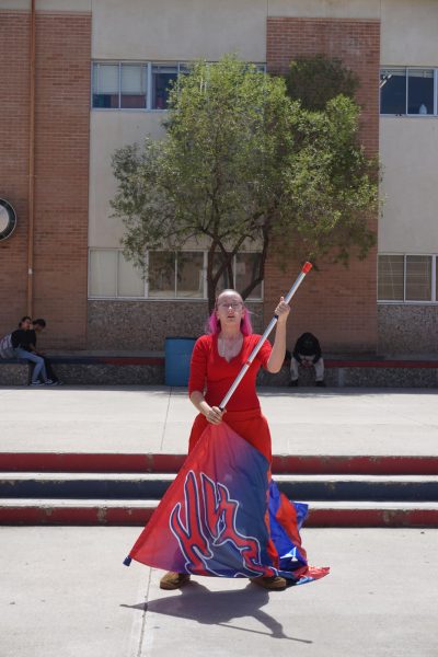 Madi Jordan, Color Guard captain: “…lots and lots of practice. We recently got two new members, so it’s just teaching them the fight song, a bunch of new tunes, and marching basics.”