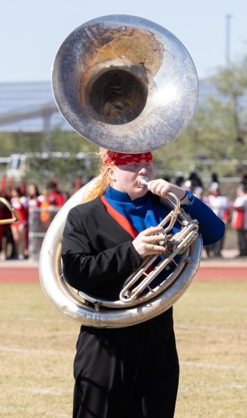 Next up, our one and only color guard senior, Savanna Horning. Savanna is a rookie color guard member, though she was in percussion in the marching band the year prior. This year marks Savanna’s 7th year in concert band, toying around with every percussion instrument. One thing she can credit color guard for is helping her stay in tempo through learning dance while counting and listening to the music. Even though she has been in concert band a lot longer, Savanna has gotten a lot of help through listening to the rhythm of music. Savanna also plays club soccer, is in NHS, Humanity United, and is on Sahuaro’s Soccer team.
