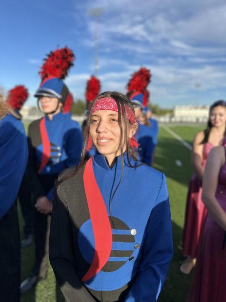The marching band has taught Jaelyn how to manage her time between work and fun. Jaelyn reflects on her time in the marching band by remembering the bus rides with her closest friends and watching the other bands perform. She loves marching band and will remember it through her friends she’s leaving behind. Jaelyn left some advice for future marchers: “Do not give up! If it’s hard, don’t automatically think you should quit on it. Keep going.”
